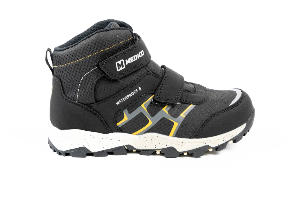 Dětské kotníkové boty s vodotěsnou membránou. Obuv má ochranný okop proti poškození, stélka je z paměťové pěny a je vyjímatelná. Obuv má reflexní prvky, speciální šestiháčkové suché zipy. V suchých zipech díky nové technologii se nedrží žádné nečistoty a i když je mokrý, tak stále drží. Velice dobrá prozutelnost díky dvěma suchým zipům.